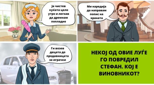Сите сакаме да гледаме мистерии и детективски филмови и серии. Најмногу нѐ возбудува моментот кога се обидуваме пред главниот лик да ги разоткриеме настаните. Овие загатки ви го нудат токму тоа, станете и самите детективи и откријте ги мистериите. Семејството на Стефан не било дома за викендот, а тој е пронајден повреден пред вилата. Кој …