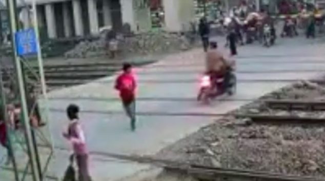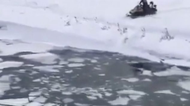 Генијална идеја за зимска забава: Да преминеш со моторната санка преку замрзнатата река