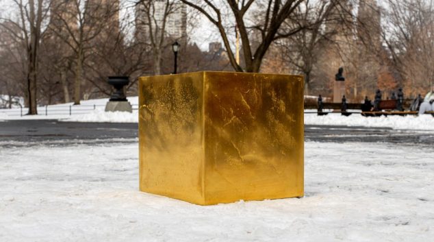Тркачите рано наутро во Централ парк во Њујорк неодамна беа сведоци на необична глетка – на стопениот снег во близина на Наумбург Бандшел на 2 февруари 2022 година во раните утрински часови (п)оставија златна коцка направена од чисто 24-каратно злато. Поточно, станува збор за коцка со големина од околу половина метар и тешка 186 килограми, …