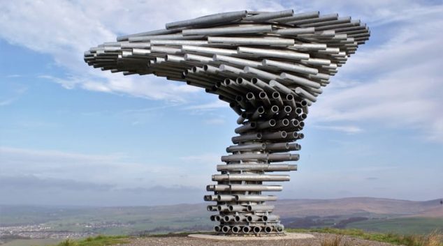 Одејќи меѓу скалите со оргули и поплочените патеки, се чувствувате како да ги слушате истите звуци што ги слушате кога нуркате во морето… Распеано ѕвонечко дрво, Англија Прекрасната музичка скулптура висока три метри се состои од шупливи челични цевки со различни должини. Кога дува ветер, мелодијата што многумина ја опишуваат како „пријатно морничава“ се шири …
