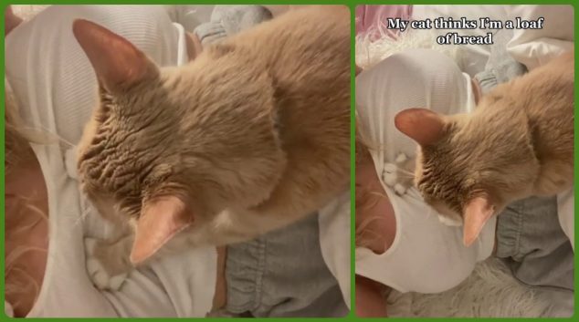 Моето маче мисли дека сум тесто