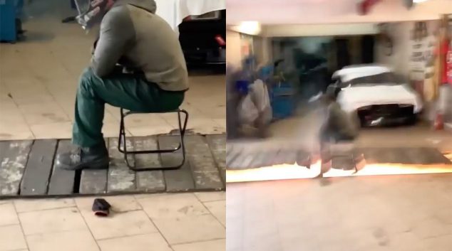 Колкав идиот треба да си за да пукнеш петарда во каналот на автомеханичарската работилница