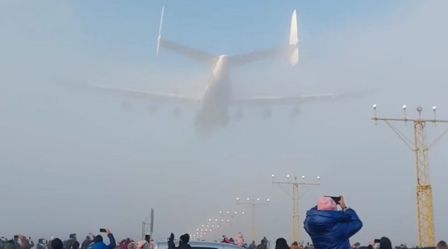 Луѓето го снимаат овој феномен со телефоните, а чудовиштето не ѝ се плаши на маглата. Напротив, маглата треба да се плаши од него. Со дури 6 мотори и максимална вкупна тежина од 640 тони, Ан-225 е најтешкото и најголемото летало во светот. Ан-225 бил дизајниран за Советската вселенска програма како замена за Мјасишчев ВМ-Т. Способен …