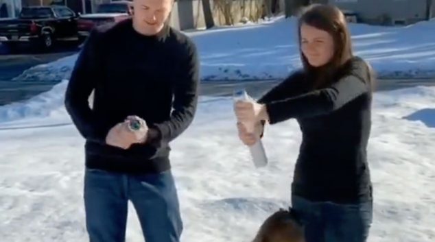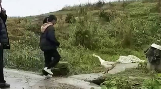 Девоката ѝ покажува сила на гуската, а не знае дека гуските се познати тепачи меѓу животните