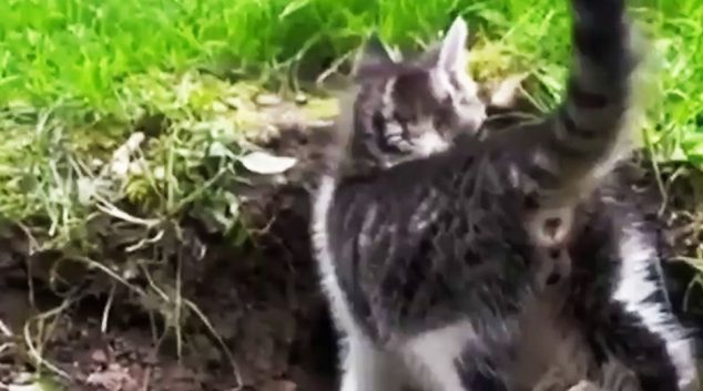 Љубопитното маче ги надушка вкусните зајаци во дупката