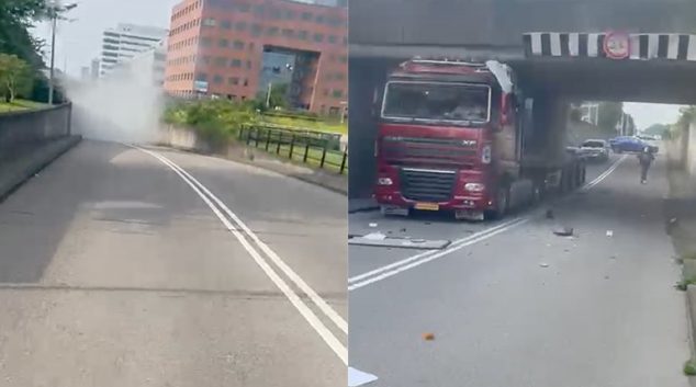 Камионџија се потцени кога требаше да помине под мостот