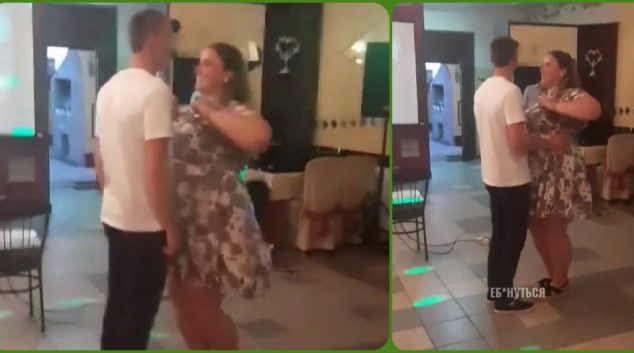 Девојката прифатила да танцува со чичето, а тој низок, низок, рацете не му стигаат до нејзината половина