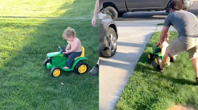 Доставувачот на пратки виде детска трамболина во дворот, посака да се врати во детството и успеа во тоа