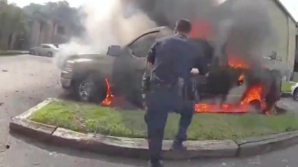 Херојско спасување на онесвестен човек во запален автомобил од страна на двајца американски полицајци