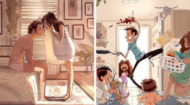 Сопруг ги илустрира идиличните моменти од секојдневниот живот со неговата сопруга и децата