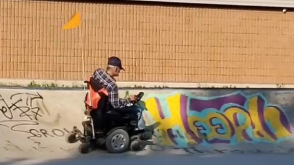 Дедото има јака количка, па реши да побеснее малку во скејт паркот со младите