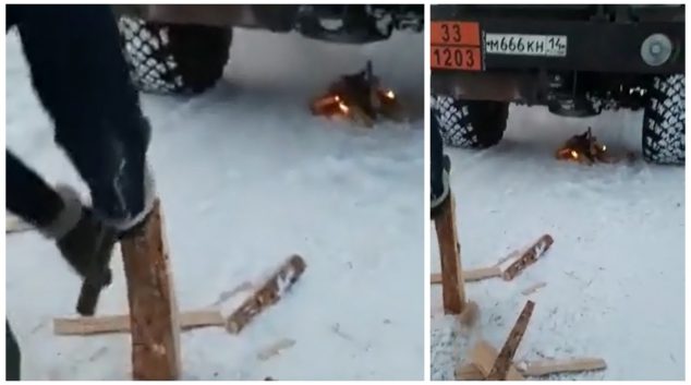 Камионџија го загрева камионот на најбуквален начин