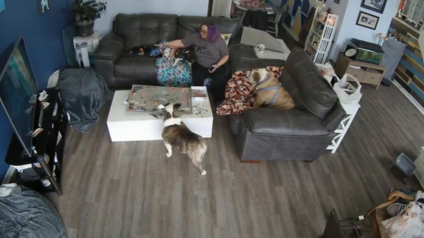 Кучето не сака газдрицата да мести сложувалки, наместо да си игра со него