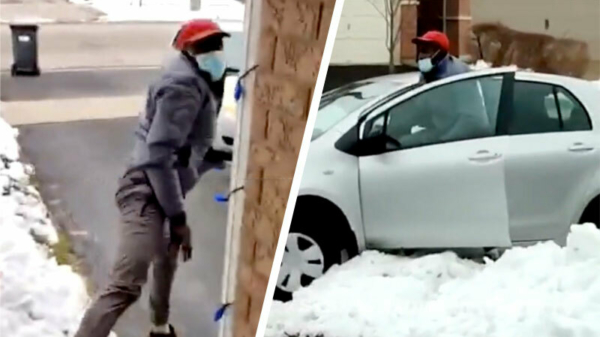 Најзасрамувачкото бегство на крадец на пакети од пред вратите