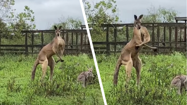 Кенгурот Џек ги покажува мускулите кога ќе види дека го снимаат