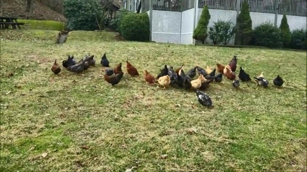 Сокол лета над кокошките, петелот не го гледа, па газдарицата реши да го вклучи алармот