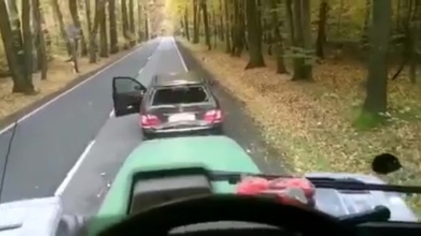 Најглупата идеја на денот: Да му ги тестираш кочниците на тракторот што те изнервирал на патот