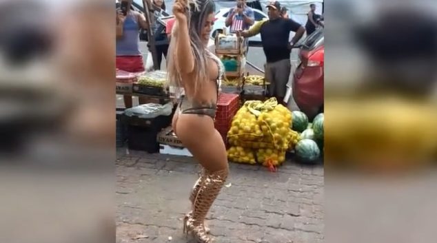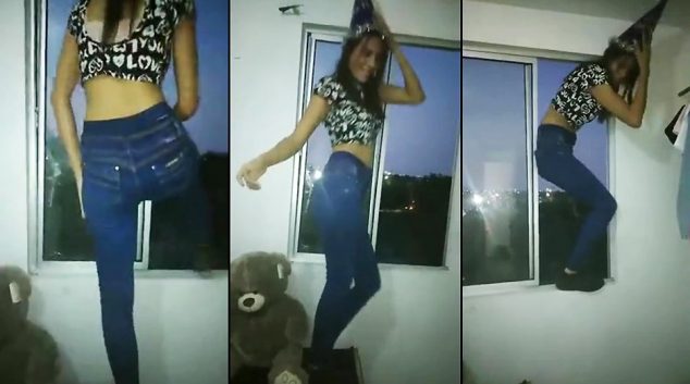 Веселата девојка одлучи да изведе еден танц на прозорец