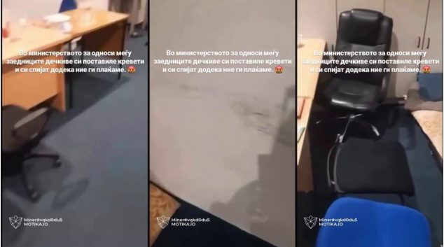 Во Министерството за односи меѓу заедниците си поставиле кревети и си спијат додека ние си плаќаме