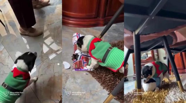 Кучето го отвори божиќниот подарок и може да кажеме дека навистина многу му се допадна