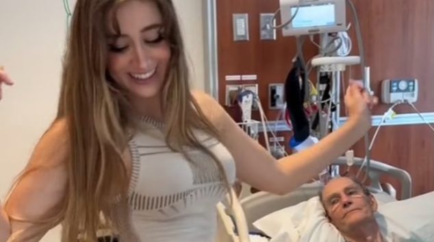 „Заљубената“ дама весело игра покрај болничкиот кревет на нејзиниот постар дечко, кој може да ѝ биде дедо, шегувајќи се дека таа ќе наследи сѐ