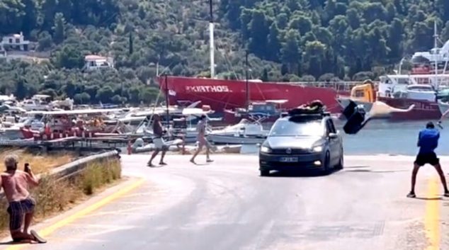 Незгода на грчки аеродром: Авионот на полетување му го разнесе покривот на автомобилот