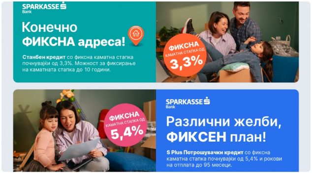 Кога помислуваш на стабилност помислуваш на Шпаркасе: Нови промотивни кампањи за станбен и потрошувачки кредит со фиксни каматни стапки