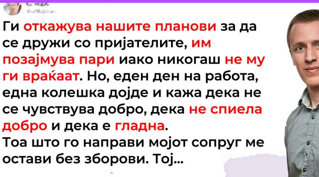 „Сакам да се разведам од мојот сопруг затоа што премногу сака да им угодува на луѓето. Последната капка беше со колешка од работа“