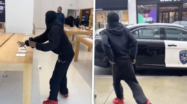 Маскиран тип краде 49 Ајфони, алармите вриштат, а тој си поминува покрај полицискиот автомобил