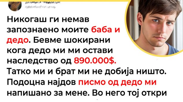 „Дедо ми ми остави огромно наследство само мене и едно писмо, после тоа што го прочитав во писмото не знам дали да го делам наследството со семејството“