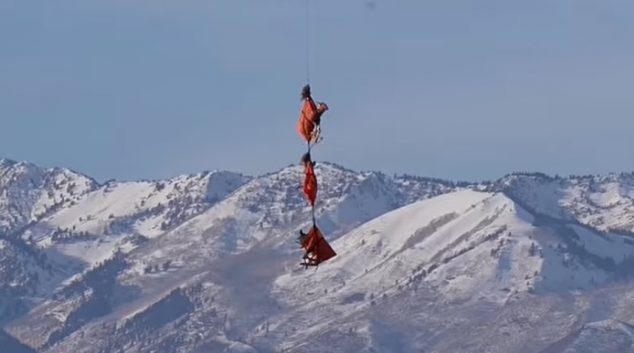 Завиткани во црвена ткаенина, животните виселе на јаже прикачено на хеликоптер кој ги преместувал во област за да извршат здравствени проценки. Биолозите ја спроведуваат мисијата секоја зима, преместувајќи 1.200 елени на отворен простор каде што четириножните животни можат да бидат означени со GPS јаки. Тимот тргна во акција веднаш штом еленот слета на земја, ја …