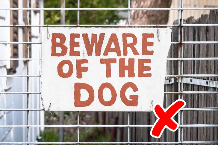 Предупредувачкиот знак за куче нема да ги избрка крадцитте, всушност, вие само им кажувате што треба да очекуваат и да бидат подготвени. Значи, ако имате куче и сакате тоа да ви сигнализира кога некој влегува во куќата, не ставајте знак за истото.
