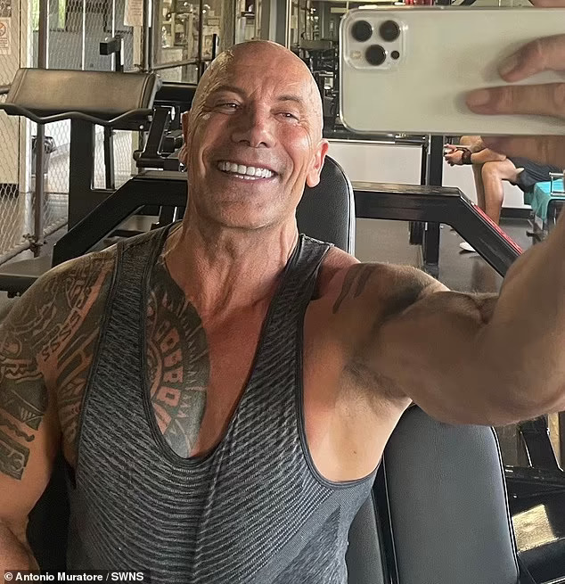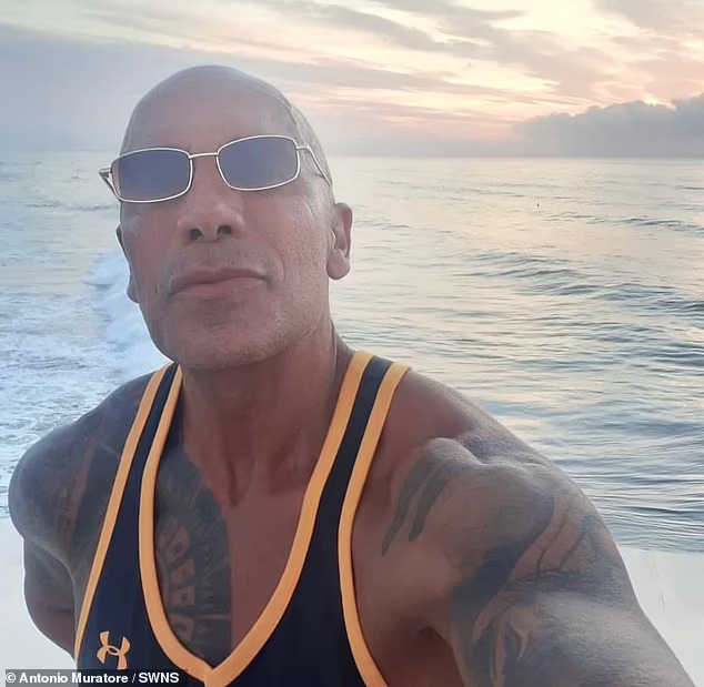 Антонио Мураторе од Милано има слична форма на глава, физика и исти тетоважи како американскиот актер Двејн Џонсон.