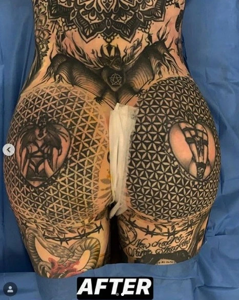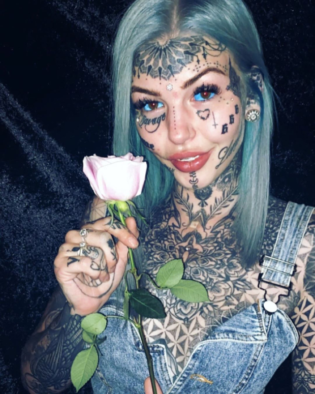 Зависничката од тетоважи со текот на годините беше на насловните страници поради нејзините екстремни модификации, вклучително и операцијата на јазикот и операција за да добие зашилени „елфински“ уши. Минатата година, таа исто така ослепела три недели и плачела сини солзи, откако ѝ било истетовирано на очното јаболко со „змеј сино“ мастило.