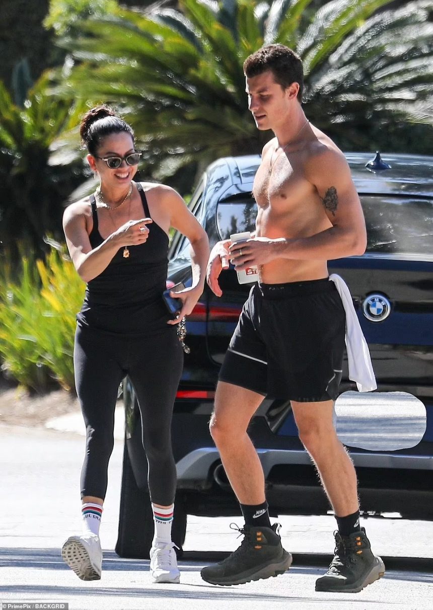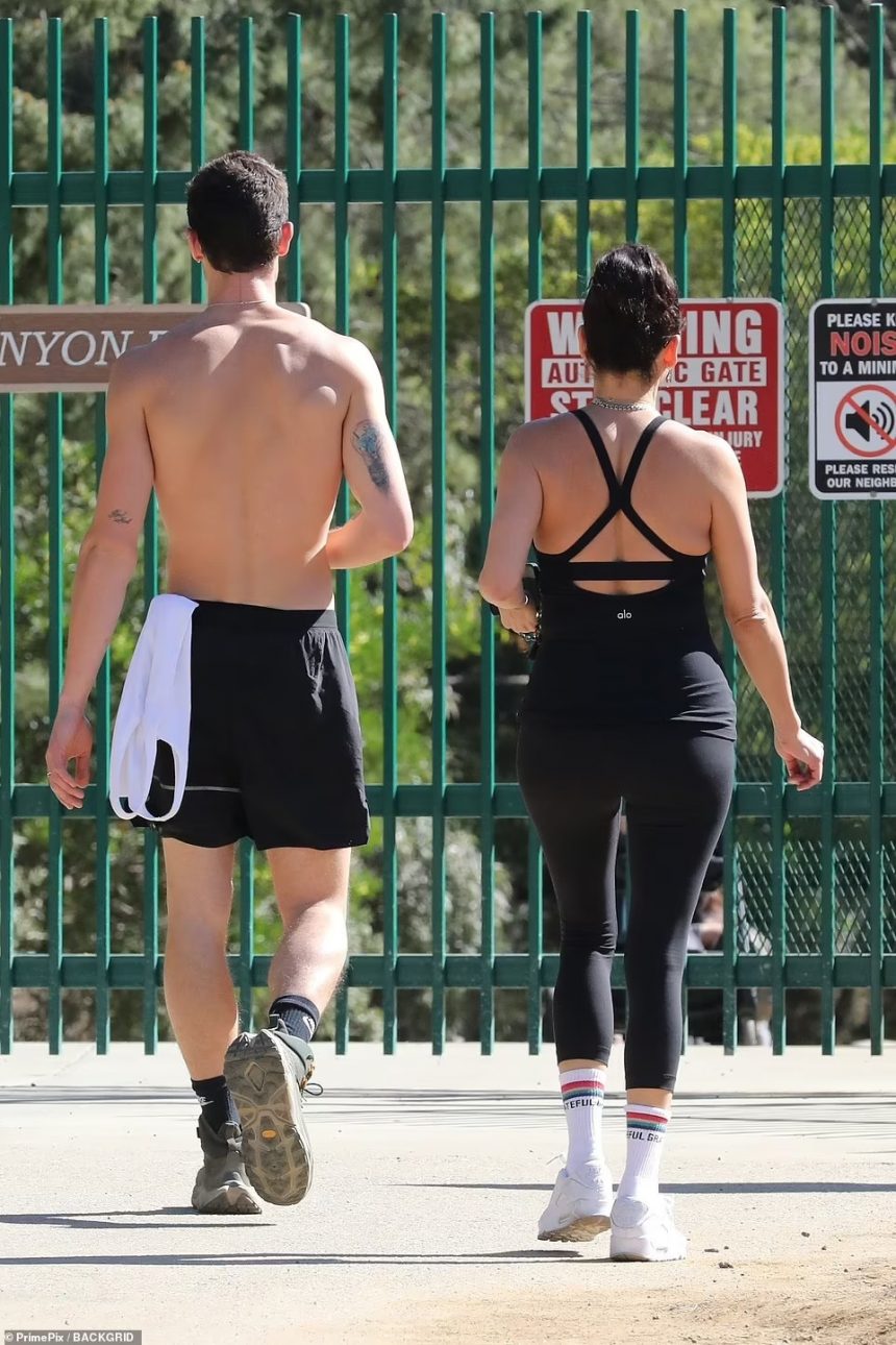 Пред да се впуштат во нивната авантура на отворено, поп-ѕвездата и лиценцираната докторка, која работеше со тони спортисти и познати личности во текот на нејзината 20-годишна кариера, одеа рамо до рамо до патеката од нивниот автомобил. Миранда ја покажа својата спортска шик фигура во црни хеланки и маица со деколте.
