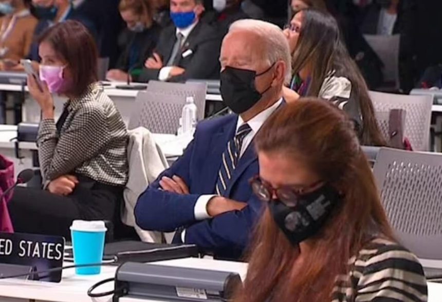 Eвропска турнеја на претседателот на САД, Џо Бајден, се чини дека е премногу голем залак за него, бидејќи 78-годишникот беше фатен како дремнува за време на воведниот говор на конференцијата за климатски промени COP26 во понеделникот во Глазгов, Шкотска.