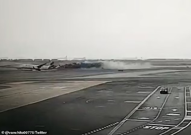 Видеото од несреќата покажува дека камионот бил погоден од крило на авионот и предизвикало свиткување на некои од тркалата на авионот. Авионот се лизнал на подвозјето на стотина метри по пистата, а дел од него се запалил.