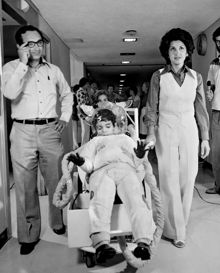 Секое нешто што го добило момчето – храна, вода, пелени, облека, книги – морало да се стерилизира и да се вметне низ воздушни брави. Овие изолациски центри биле дизајнирани од инженери на НАСА – кои подоцна исто така создале одело за Дејвид, слично на одело на астронаут, за да може слободно да се движи наоколу.