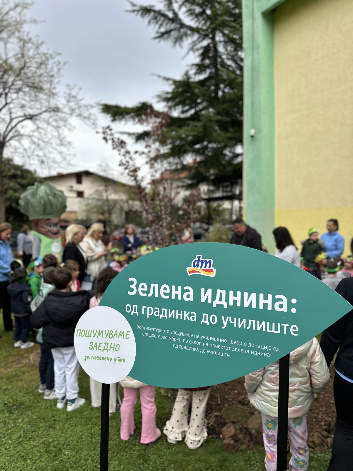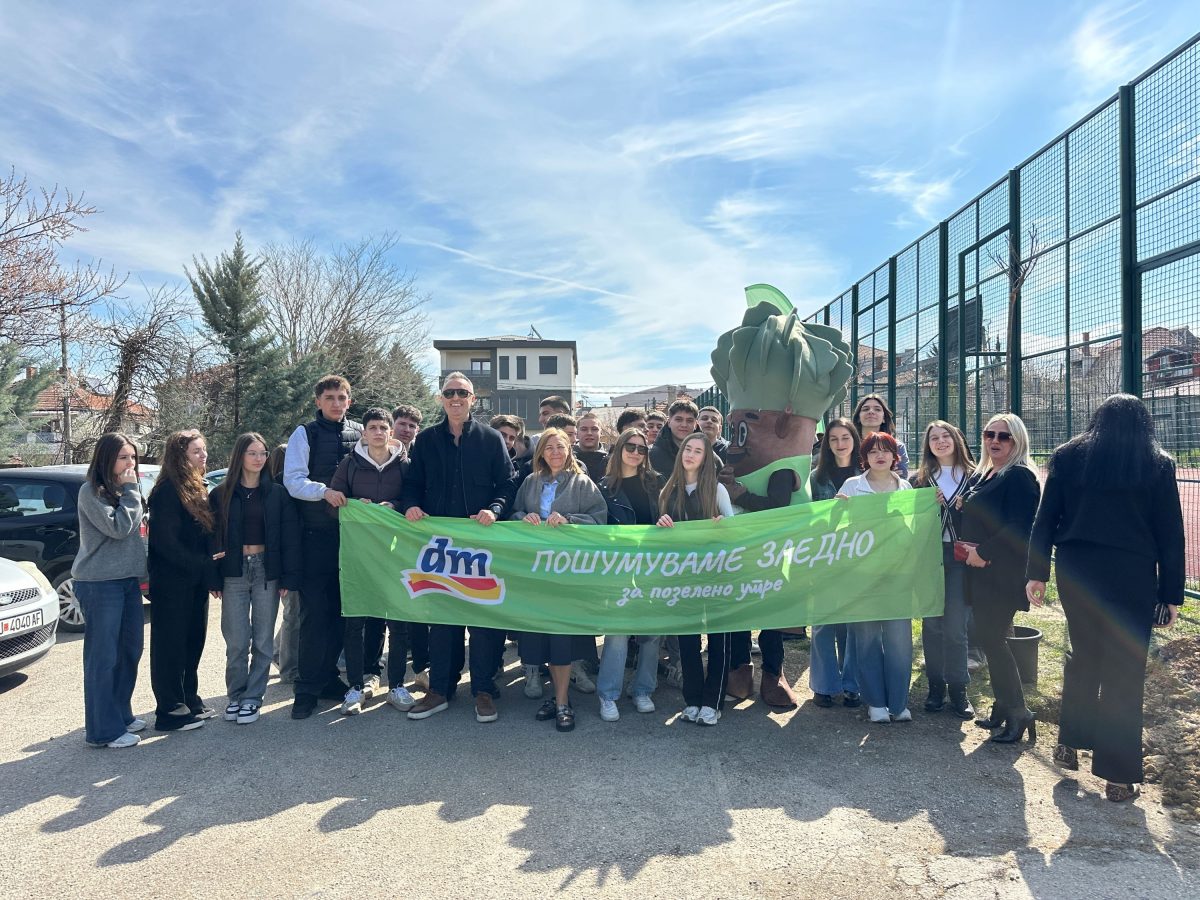 Во рамките на проектот „Зелена иднина: од градинка до училиште“, компанијата dm drogerie markt продолжува со активности за раззеленување и уредување на дворовите на воспитно-образовни установи, кои се реализираат во партнерство со Македонското еколошко друштво (МЕД). На 23 и 27 март беа спроведени нови акции за пошумување во гимназијата „Гоце Делчев“ во Куманово и во градинката „Детска радост“ во Гевгелија, при што беа засадени вкупно 133 садници.