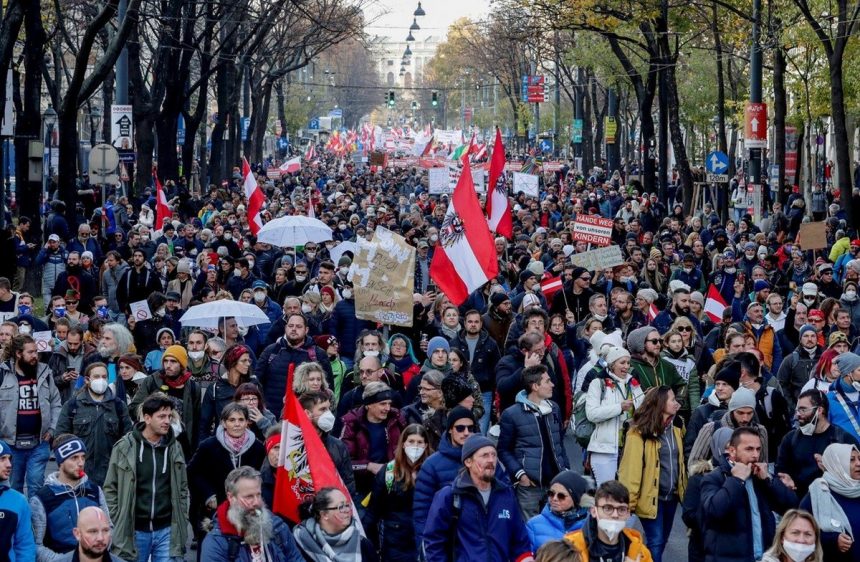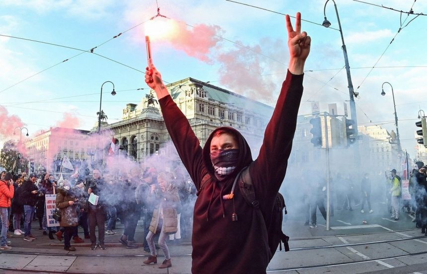 Ова доаѓа откако избувна насилство во Виена во саботата кога 100.000 демонстранти – многумина од екстремно десничарските групи – излегоа на улиците за да протестираат против новите ограничувања Ковид-19 и задолжителните вакцини.