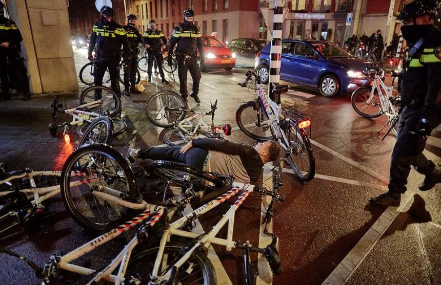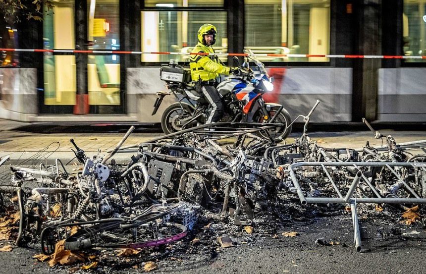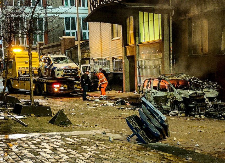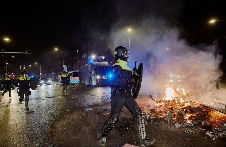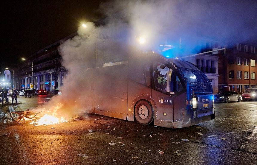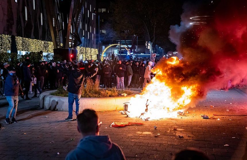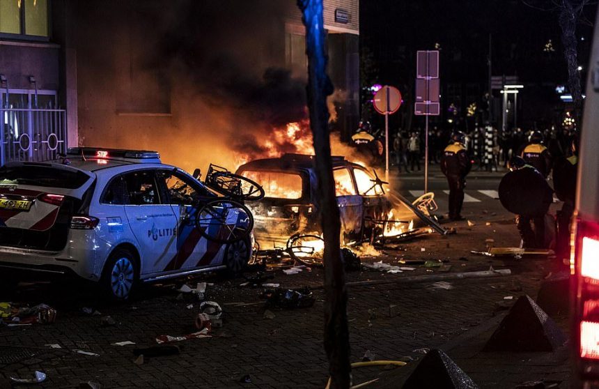Илјадници луѓе маршираа на централниот плоштад во Амстердам и во Хаг во саботата, ден по „оргијата на насилство“ за време на немирите во Ротердам во кои беа повредени седум лица. Полицијата соопшти дека седум апсења биле извршени во неделата, откако млади мажи ги запалиле улиците и пукале со огномет кон полицајците.