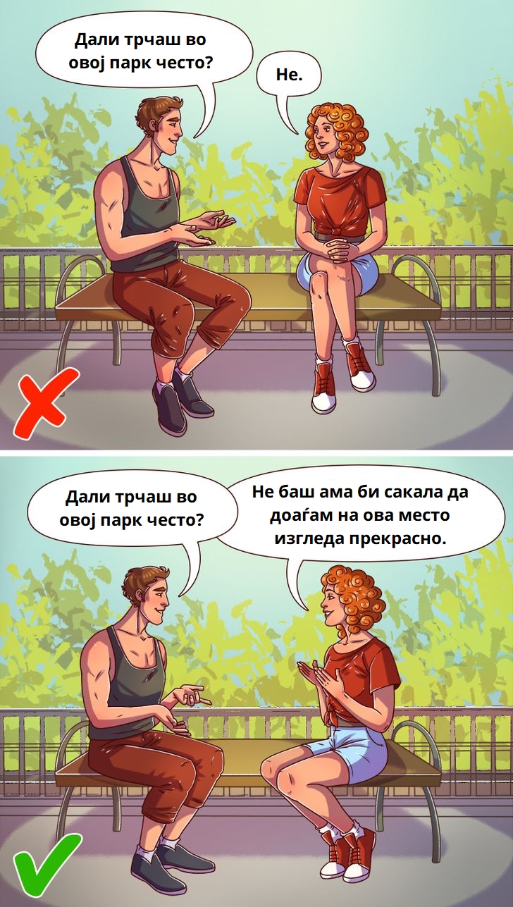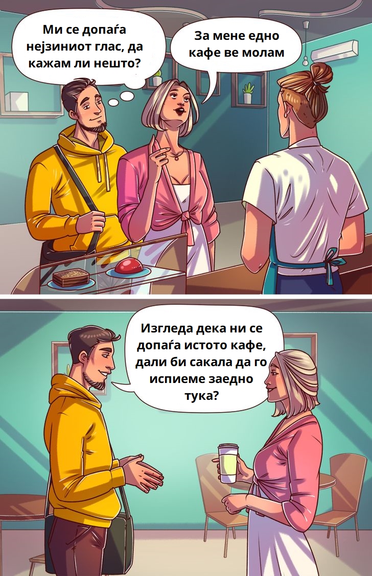 Колку повеќе им се допаѓате, толку повеќе лични детали ќе ви кажат за нив. Тие дури можат да ги споделат своите маани или неуспеси, но на малку лежерен начин. Тие, исто така, ќе се обидат да го одржат разговорот, прашувајќи ве работи за вас.