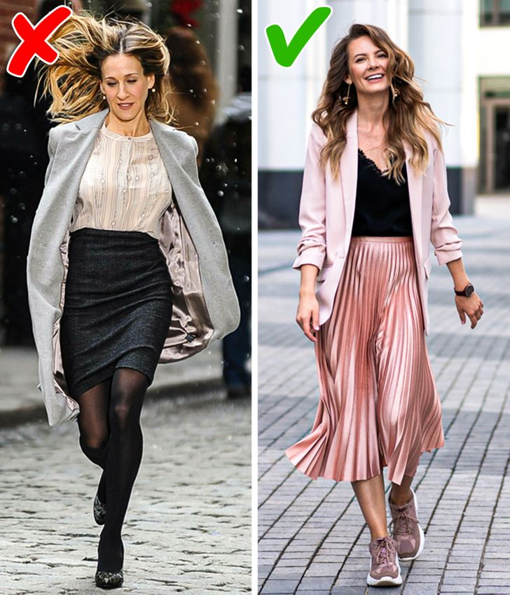 Тесните здолништа можат да го ограничат движењето на колковите, што предизвикува напрегање на ‘рбетот. Истото се случува кога ќе облечете високи потпетици: овие чевли ги поставуваат стапалата на неприродна висина, што пак предизвикува затегање на мускулите во долниот дел на грбот. За да уживате во модата без да го жртвувате вашето здравје, изберете здолништа што ќе ви овозможат слободно движење на нозете и изберете пониски потпетици.