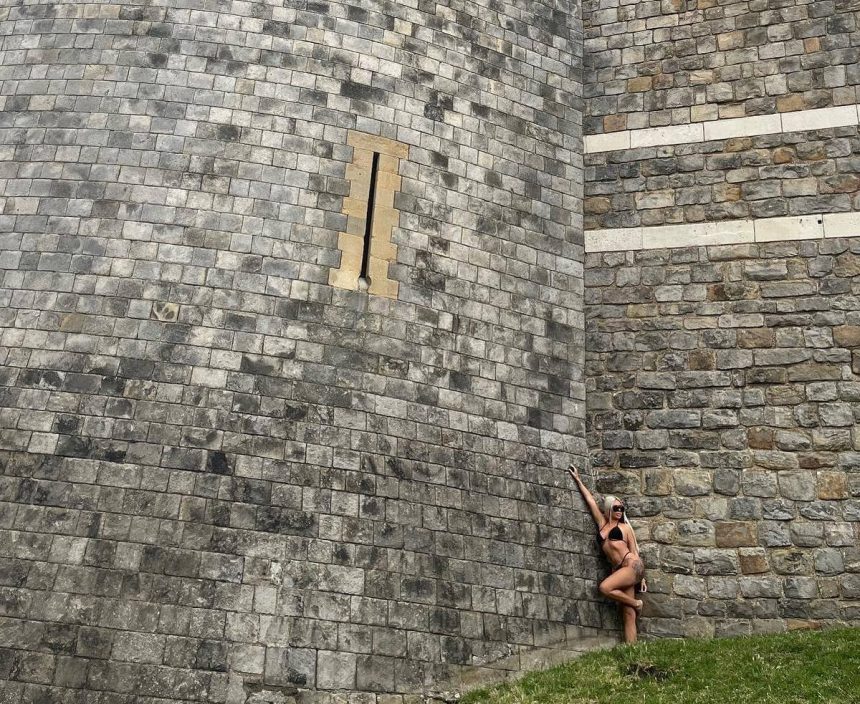 Таа рече дека полицијата ја искарала кога ја забележале нејзината фотосесија на ѕидините на замокот.