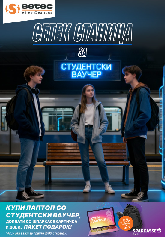 Дополнително, СЕТЕК во партнерство со Шпаркасе банка АД Скопје нуди специјална промотивна можност за студентската популација: секој студент што ќе го искористи ваучерот од 15.300 денари и ќе изврши доплата со која било картичка од Шпаркасе Банка при купување лаптоп во сите продажни салони на СЕТЕК, ќе добие пакет-подарок – ранец и маус. Кампањата е наменета за првите 1.000 купувачи што ќе извршат доплата со Шпаркасе картичка, обезбедувајќи им директна корист и поддршка во нивниот академски и секојдневен живот.