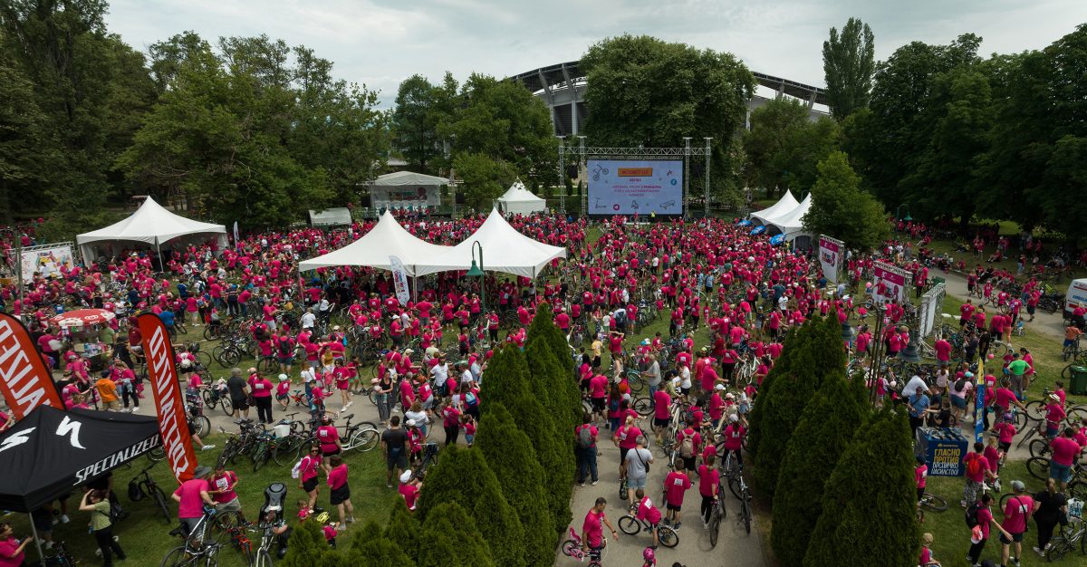Почетокот на ревијалната трка беше кај Порта Македонија, каде што неколку илјади насмеани лица нестрпливо чекаа да биде означен стартот и да возат по улиците кои само за нив беа ослободени од возила. Возејќи симболично низ центарот на градот, со маичките обезбедени од организаторот, учесниците во долга колона, го постигнаа ефектот на видливост и стигнаа до Градскиот парк за да бидат дел од големата забава организирана во нивна чест. Таму прво се освежија со „Горска“, сладоледи „Фриком“ и грицки од „Витаминка“, па ѝ се препуштија на неколкучасовната забава што ја водеа шармантните водители Марко Марк, Дени Џидрова и Александар Матовски – Цако. Следеше богата музичка програма со ОХО и омилените јунаци од „Пет+ фамилија“ и диџеј Иван, како и повеќе спортски и забавни содржини организирани од Крафт продукција. Посетителите уживаа и во уметничко катче на графити уметникот Dreadpen кој во соработка со посетителите изработуваше креативно платно кое Банката ќе го постави во своите работни простории.