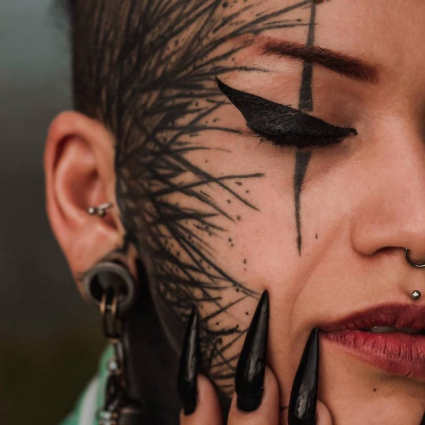 Бразилската манекенка и уметничка за тетоважи, Лорен Мореира отворено призна дека си го истетовирала целото тело, вклучително и белките на очите, поради немање самодоверба.
