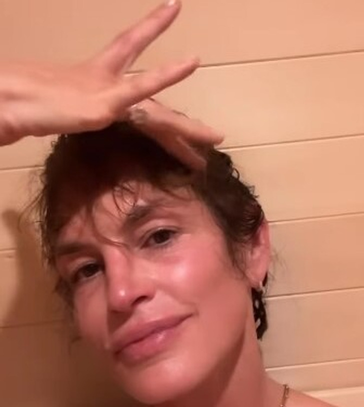 Синди Крафорд го направи своето селфи видео додека без шминка и напиша: „Бебешки влакна во сауна“.