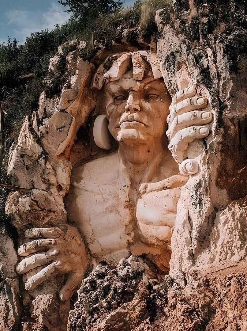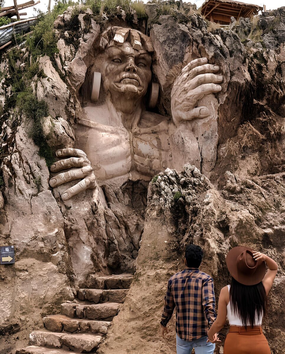 Скулптурата се наоѓа во Перу, 13 километри од градот Куско, и е дело на перуанскиот уметник Мајкл Монтеагудо, создадена во 2021 година. Издлабена со длето и чекан, скулптурата го прикажува еден од боговите на древната цивилизација Инки.