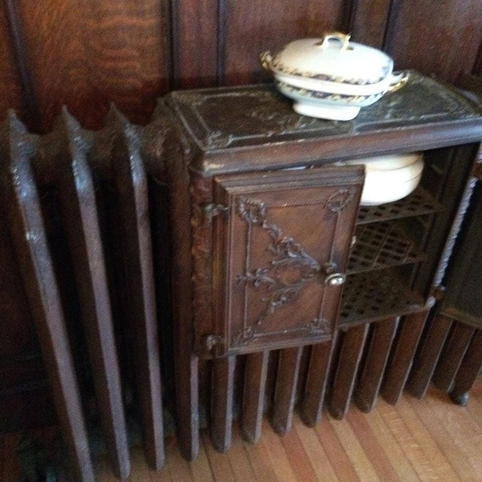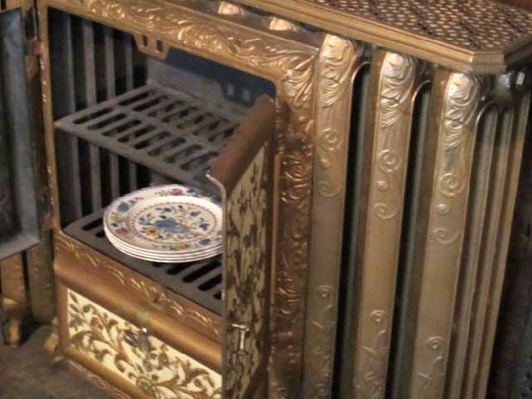 Оваа чугунена радијаторска батерија, популарна во 19-20 век, служела за греење на домот и за подгревање храна. Работела на принцип на парно греење, со температура до 100°C.